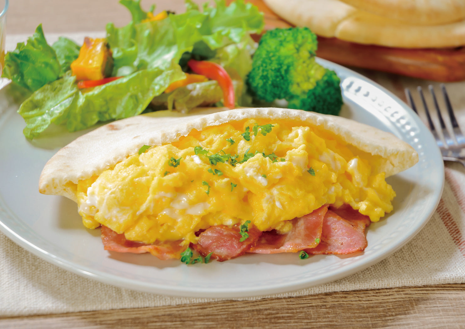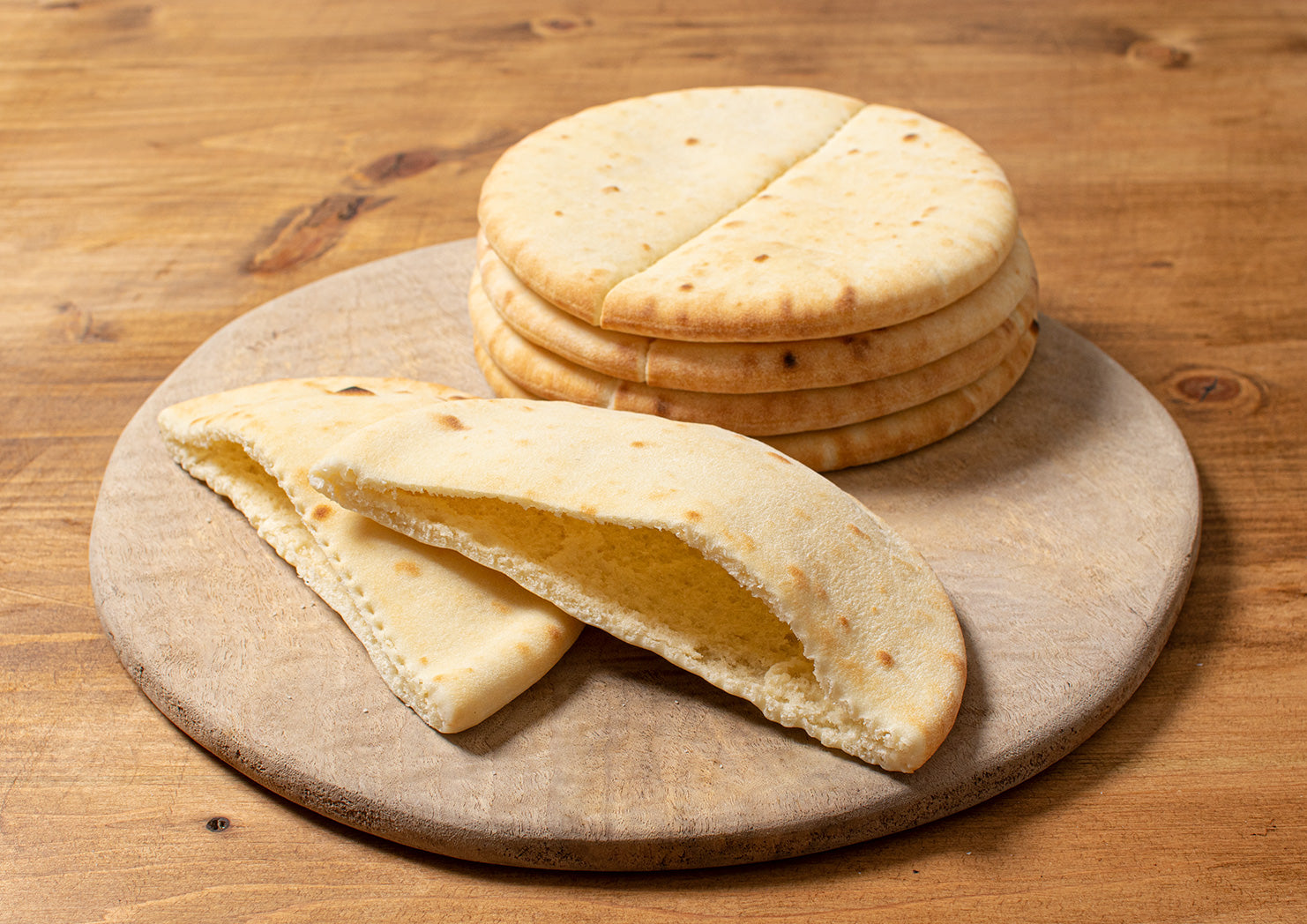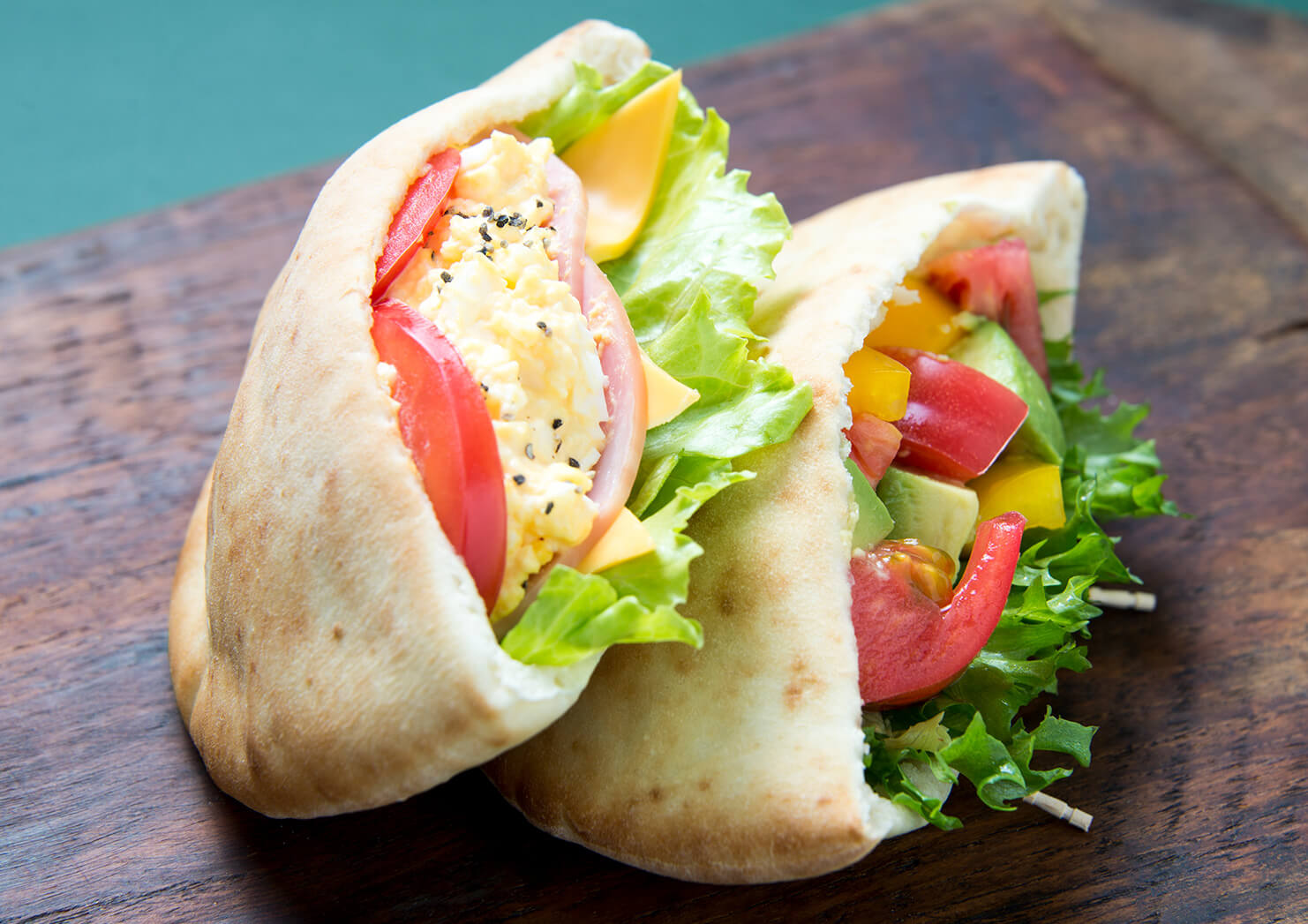 ピタパンは、ピザの起源ともいわれており、中近東で主に食べられているパンです。中の空洞部分に、お好みの具材を入れて様々な味を楽しむことができます。手が汚れずに食べられるので、お弁当にもぴったりな便利食材です。